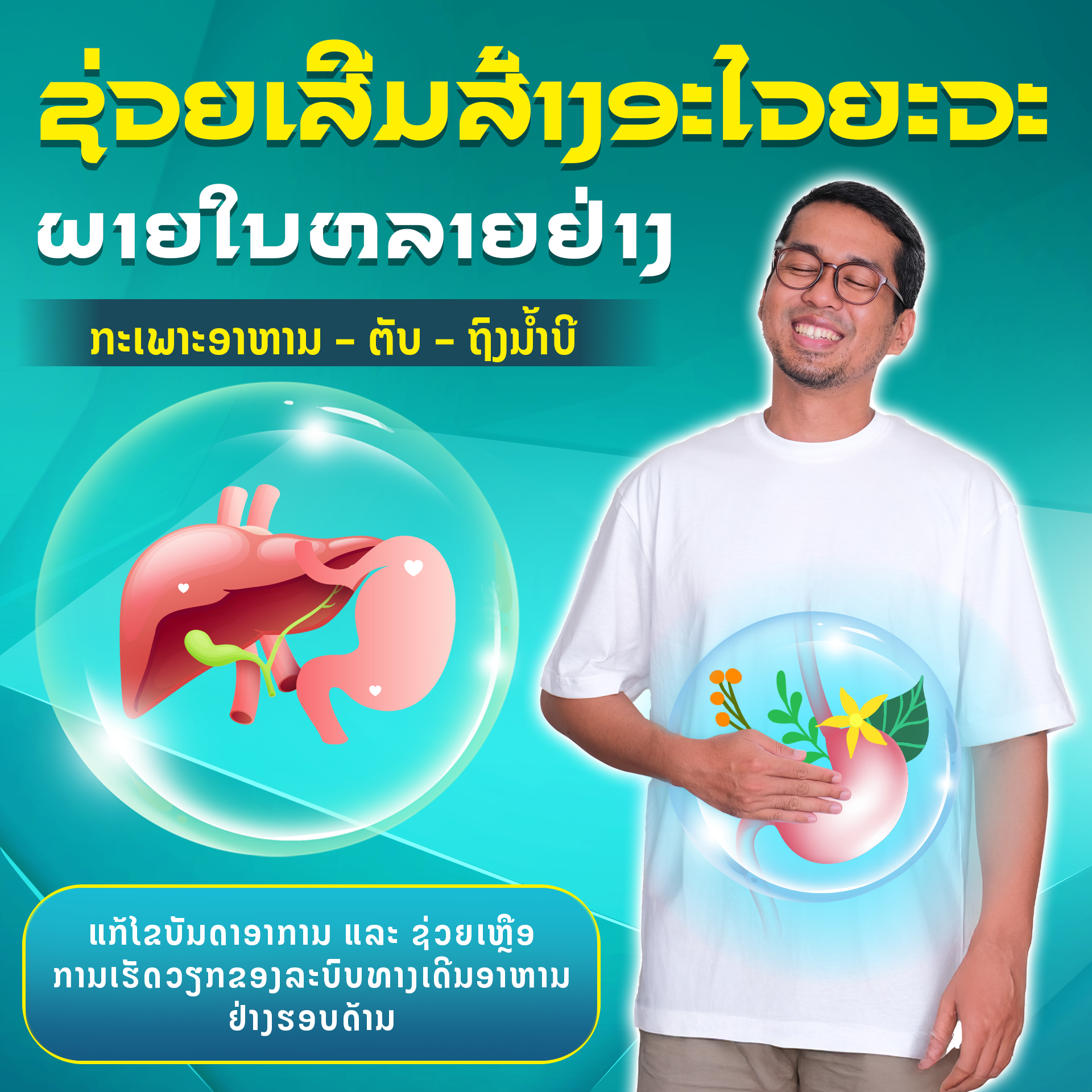 ເຈົ້າຮູ້ຫຼືບໍ່: ລະບົບຍ່ອຍອາຫານບໍ່ໄດ້ມີພຽງແຕ່ກະເພາະເທົ່ານັ້ນ! ຫຼາຍຄົນບໍ່ຫາຍຈາກອາການທ້ອງອືດ, ແສບຮ້ອນທ້ອງ ເຖິງວ່າຈະກິນຢາກະເພາະຫຼາຍປານໃດກໍຕາມ. ຄວາມຈິງກໍຄື: ຕັບ ແລະ ຖົງນ້ຳບີ ມີບົດບາດສຳຄັນໃນຂະບວນການເຜົາຜານ ແລະ ການດູດຊຶມສານອາຫານ. ຖ້າຕັບ ແລະ ຖົງນ້ຳບີບໍ່ແຂງແຮງ, ຂະບວນການຍ່ອຍອາຫານຈະຢຸດສະງັກ, ເຮັດໃຫ້ເກີດຄວາມດັນຢ້ອນກັບໄປຫາກະເພາະອາຫານ.
