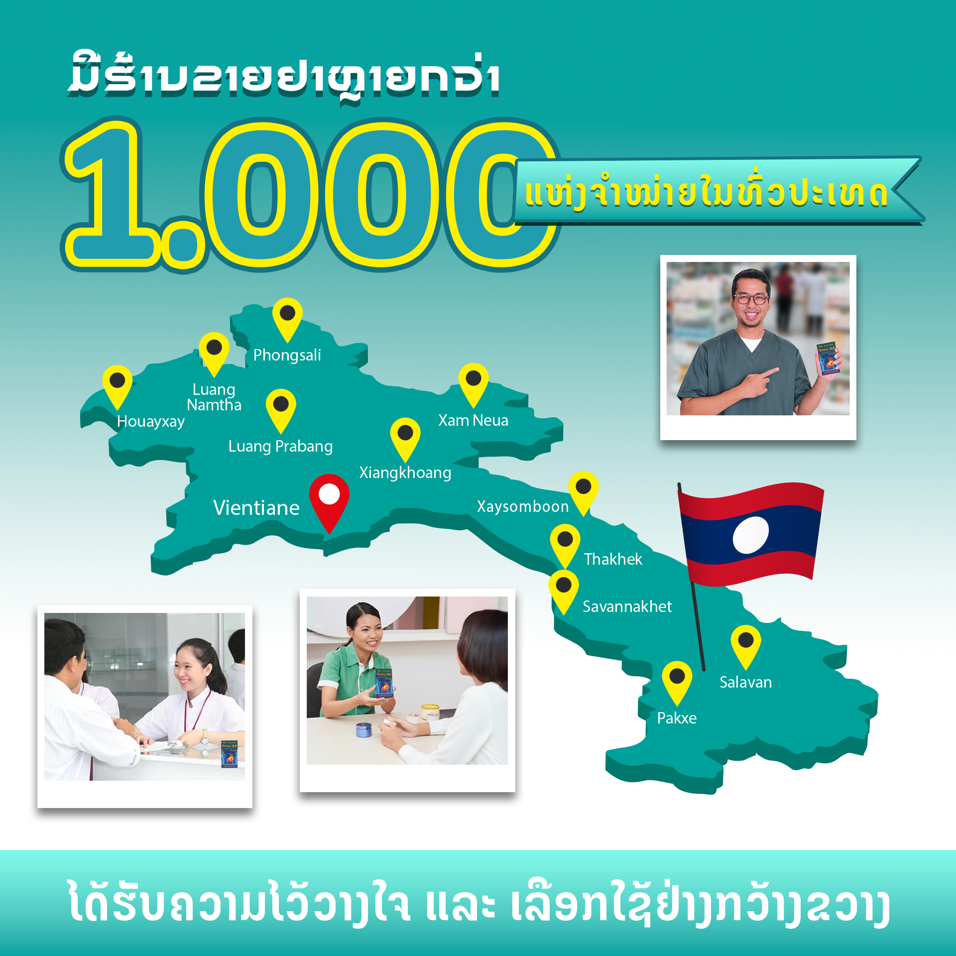 3️⃣ ຄວາມເຊື່ອໝັ້ນຈາກຮ້ານຂາຍຢາກວ່າ 1,000 ແຫ່ງທົ່ວປະເທດ: